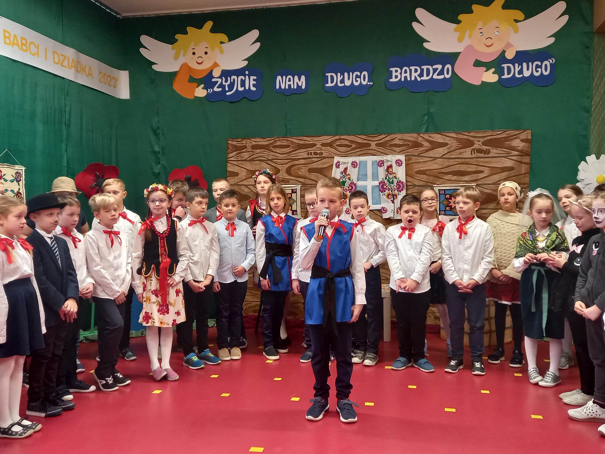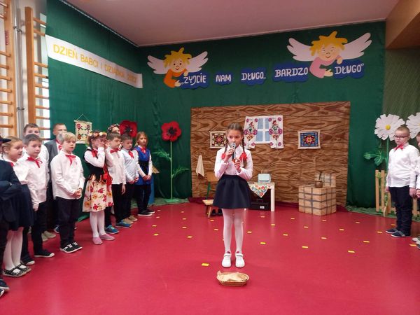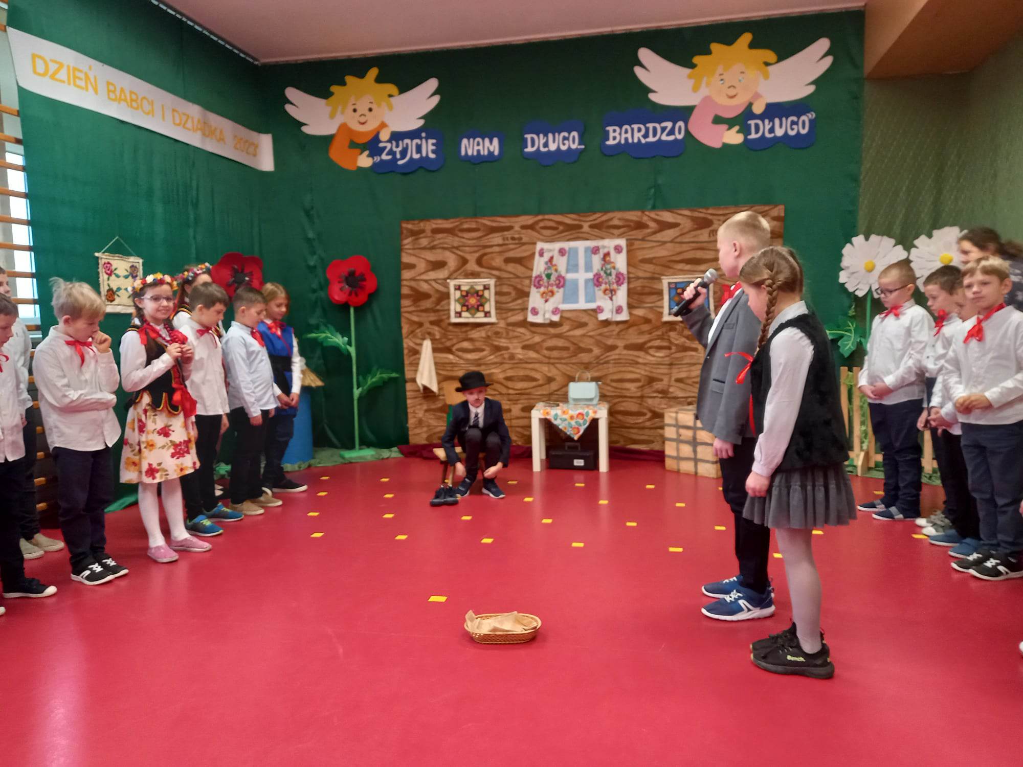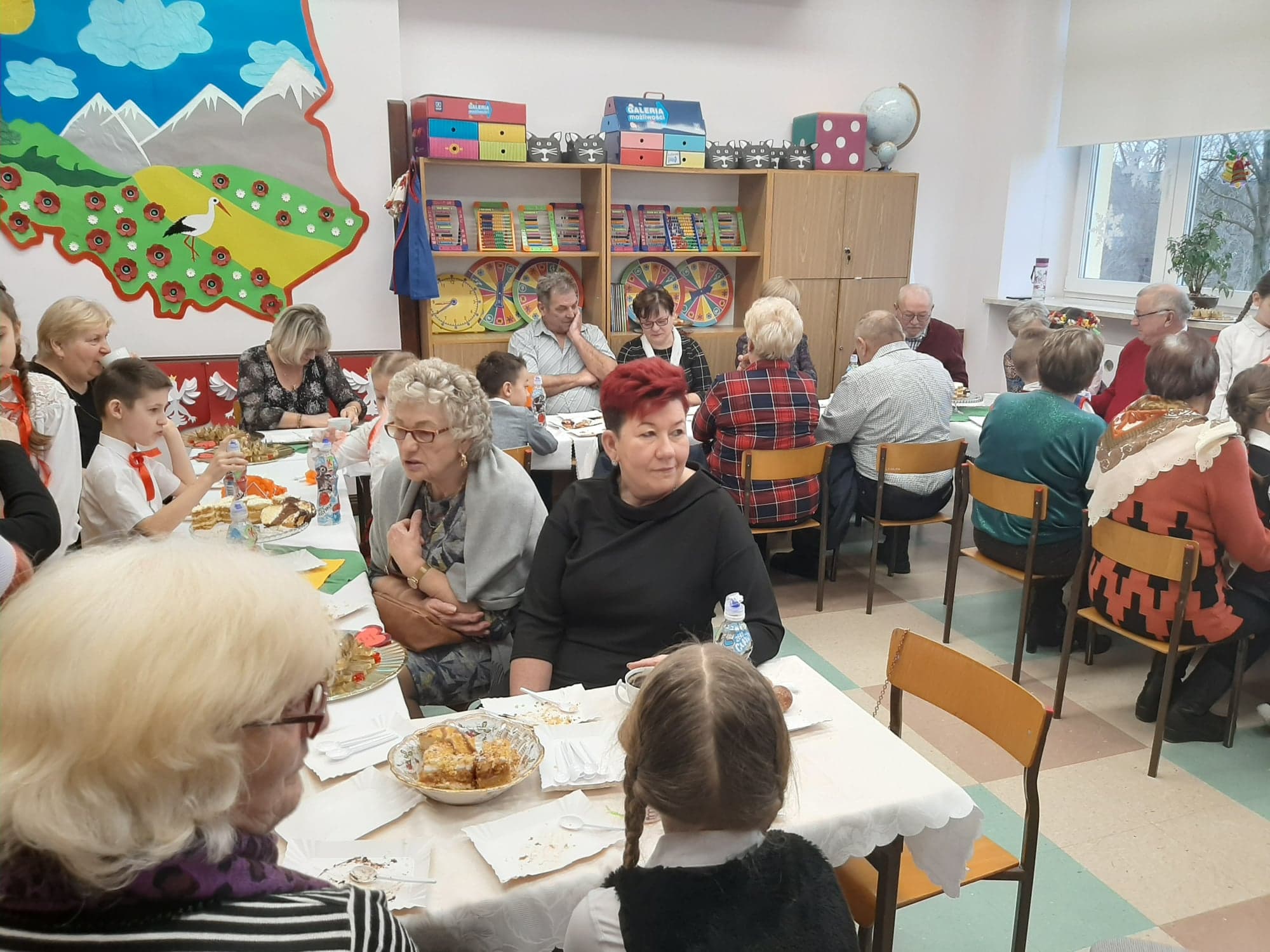 25 stycznia w naszej szkolnej odbyła się niezwykle ciepła i rodzinna uroczystość- Dzień Babci i Dziadka. Występ przygotowany przez uczniów zgromadził, jak zawsze, mnóstwo gości. Szanowni Dziadkowie i Szanowne Babcie ze wzruszeniem oglądali występy artystyczne Swoich Wnuków. Można było podziwiać popisy recytatorskie, śpiew, taniec. Dzieci dały z siebie wszystko, by jak najpiękniej uczcić ten wyjątkowy dzień. Występ zakończył się odśpiewaniem gromkiego „Sto lat”, po czym dziadkowie otrzymali własnoręcznie wykonane upominki oraz udali się na słodki poczęstunek przygotowany przez rodziców naszych uczniów. |