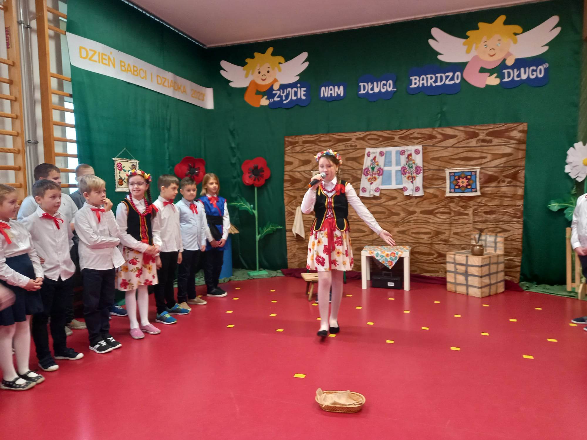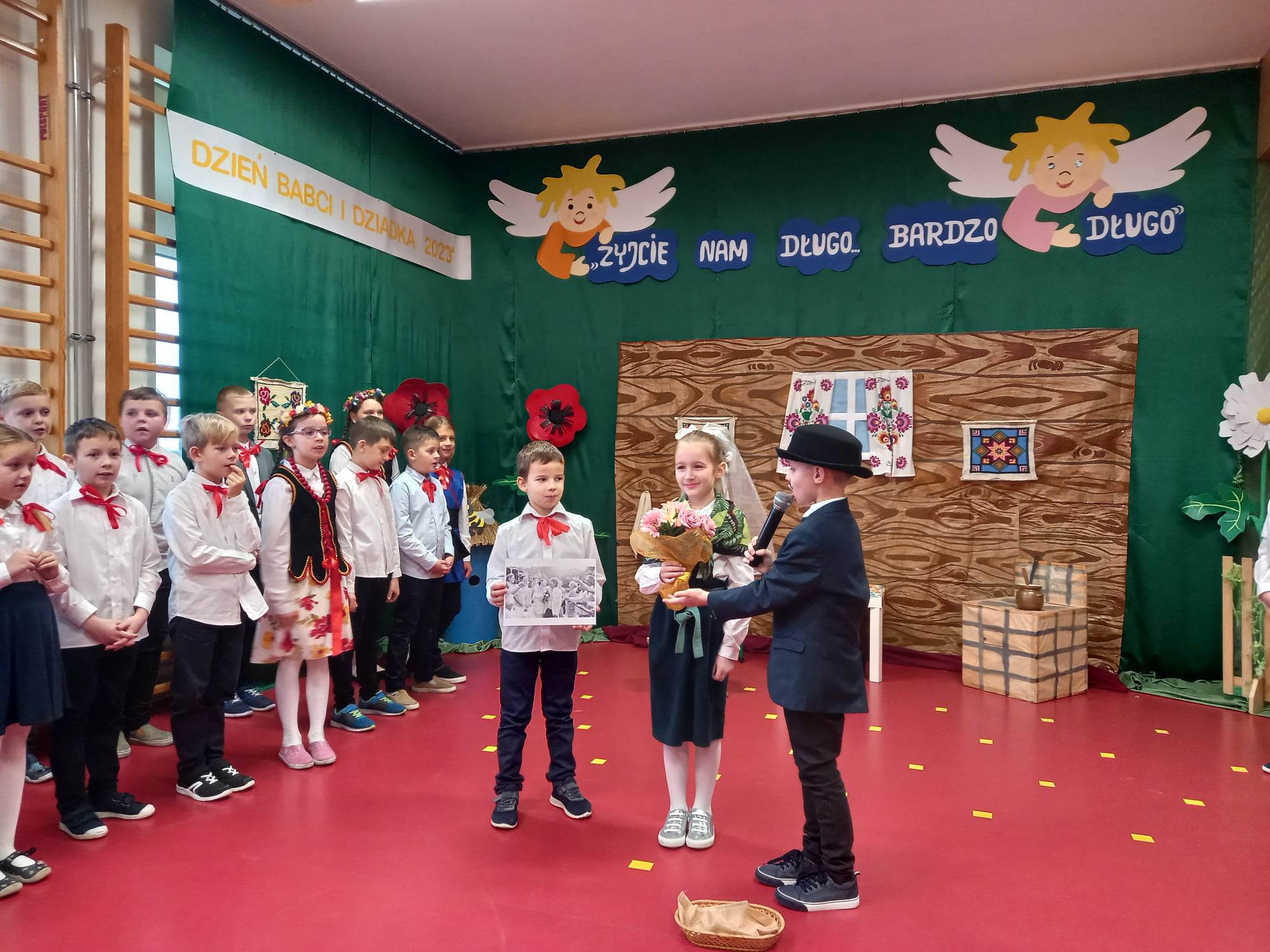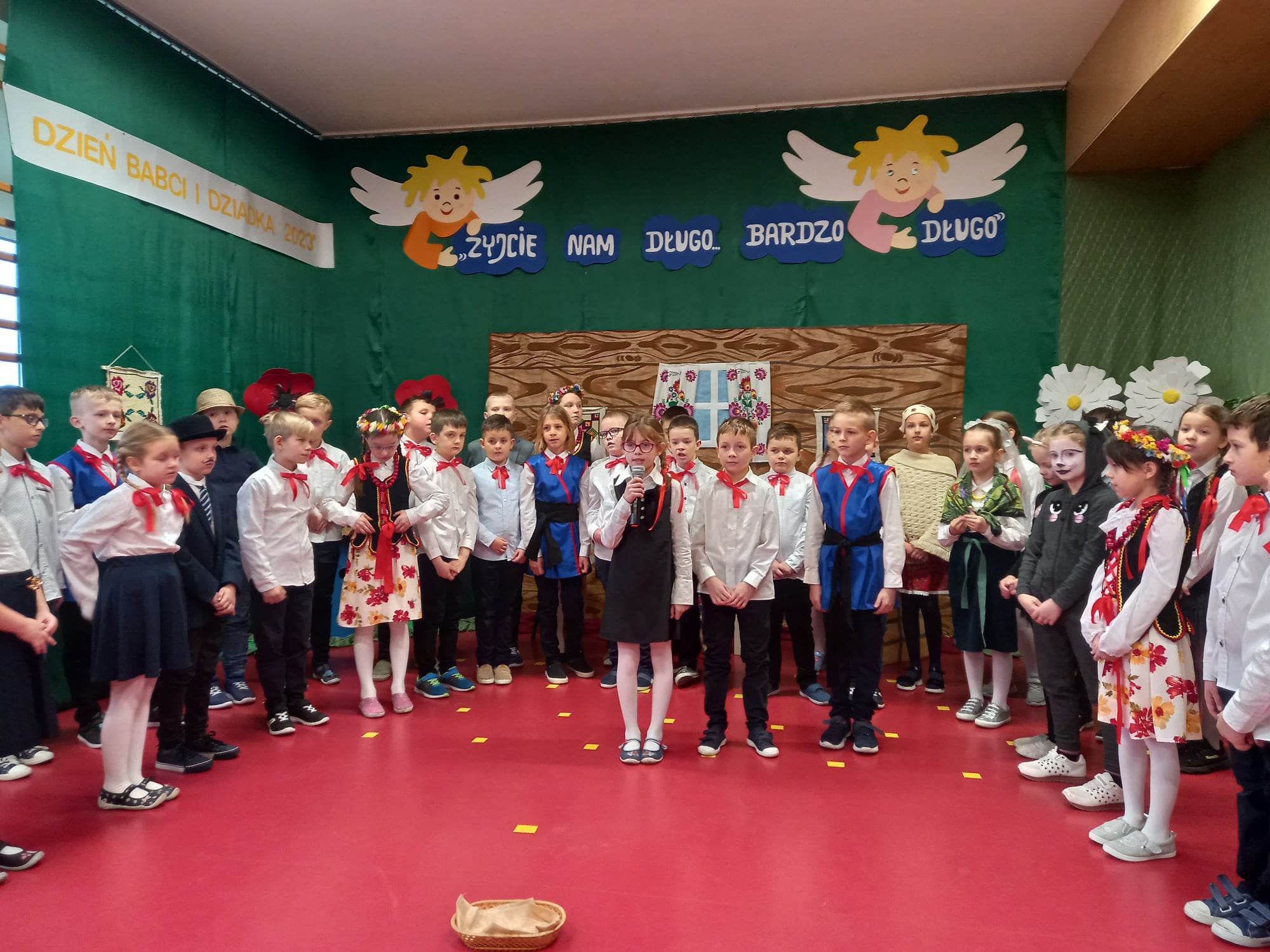 25 stycznia w naszej szkolnej odbyła się niezwykle ciepła i rodzinna uroczystość- Dzień Babci i Dziadka. Występ przygotowany przez uczniów zgromadził, jak zawsze, mnóstwo gości. Szanowni Dziadkowie i Szanowne Babcie ze wzruszeniem oglądali występy artystyczne Swoich Wnuków. Można było podziwiać popisy recytatorskie, śpiew, taniec. Dzieci dały z siebie wszystko, by jak najpiękniej uczcić ten wyjątkowy dzień. Występ zakończył się odśpiewaniem gromkiego „Sto lat”, po czym dziadkowie otrzymali własnoręcznie wykonane upominki oraz udali się na słodki poczęstunek przygotowany przez rodziców naszych uczniów. |