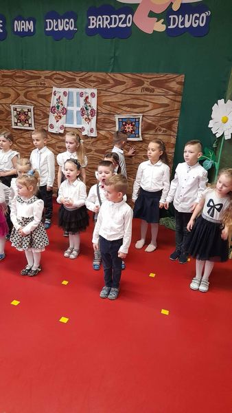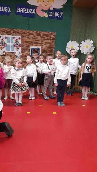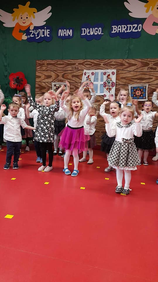 „Dziś dla Babci słońce mamy i całuski dla Dziadziusia, dziś życzenia wnuczek składa i piosenki śpiewa wnusia…” te słowa można było usłyszeć podczas uroczystości z okazji Dnia Babci i Dziadka, którą wspólnie przygotowały dzieci z grupy Biedronki i Zerówki i która odbyła się 25 stycznia. |