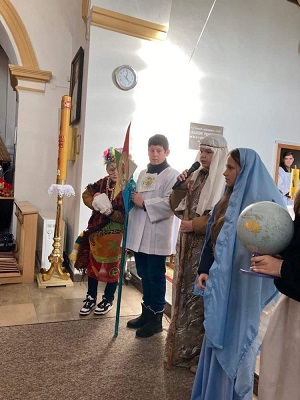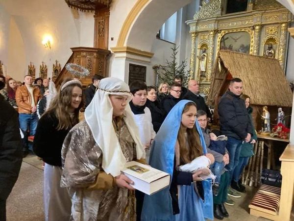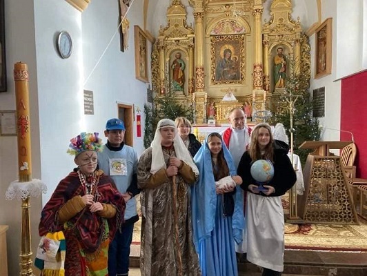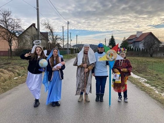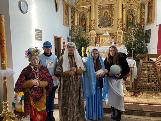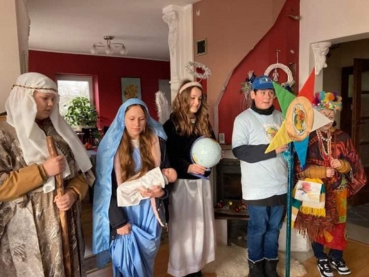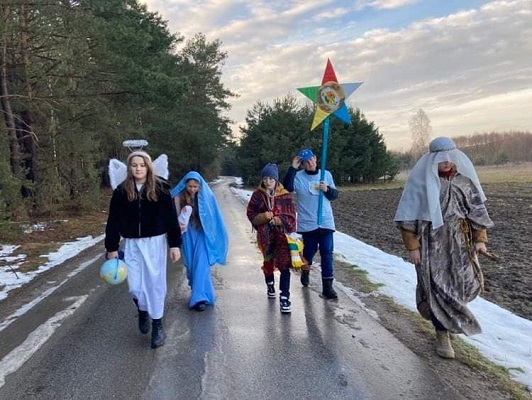 Uczniowie naszej szkoły działający w Ognisku Misyjnym : z kl. V Nikola J. - Maryja, Karina J. - anioł, Wojtek K. - chłopiec z Papui -Nowej Gwinei, z kl. VI Szymon W.- Józef i z kl.VII Filip W. kolędowali po domach mieszkańców naszej parafii wspierając rówieśników z Oceanii. Wszędzie byli mile przyjmowani i obdarzani świątecznymi smakołykami. Dzięki rodzicom kolędników akcja szybko rozprzestrzeniała się na całą wieś. Jednak nasi młodzi kolędnicy nie byli dziś w stanie dotrzeć do wszystkich parafian. Obiecują, że w Uroczystość Trzech Króli jeszcze raz ruszą drogami Bolmina, aby głosić Dobrą Nowinę o narodzeniu Bożego Dzieciątka i pomóc kolegom-Papuasom. Jolanta Luty- katechetka